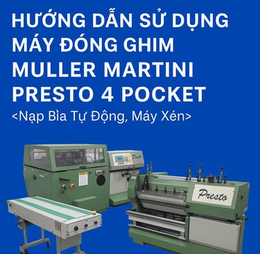 Kết luận: Trên đây là hướng dẫn chi tiết cách sử dụng máy đóng ghim yên ngựa Muller Martini Presto 4 Pocket, từ nguyên lý hoạt động, thao tác vận hành cho đến cách xử lý các sự cố phổ biến. Hy vọng blog hướng dẫn này sẽ giúp bạn tự tin hơn khi vận hành máy, đảm bảo an toàn và hiệu quả. Chúc bạn thành công và máy luôn hoạt động tốt!