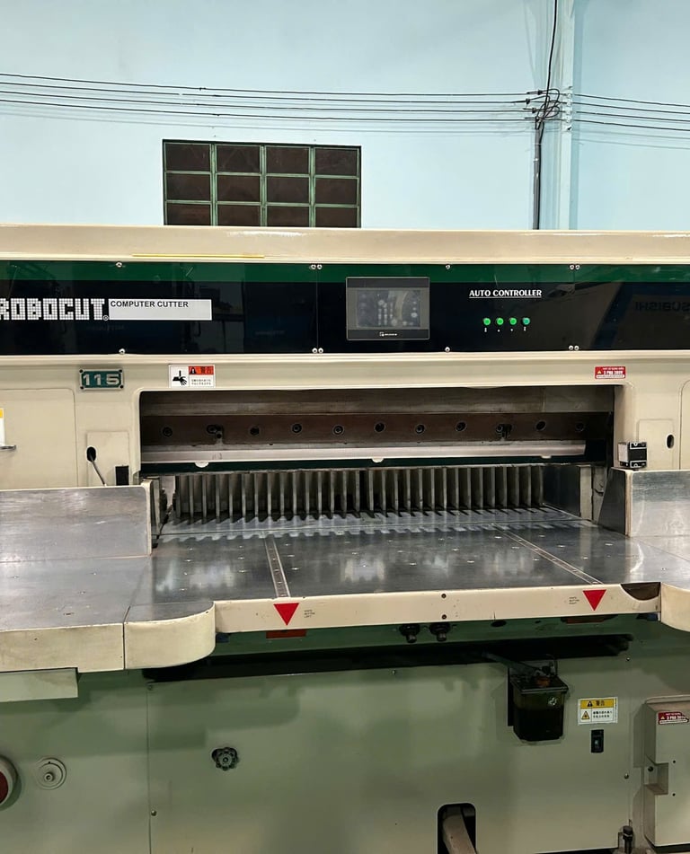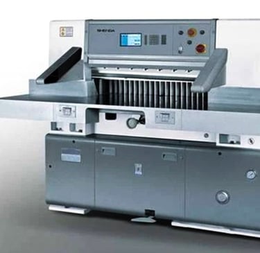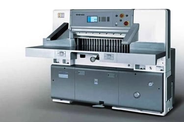 Máy cắt giấy khổ lớn, cắt chính xác, phục vụ nhà in và xưởng bao bì.